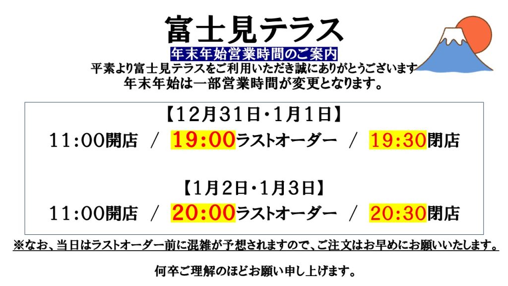 年末年始は非常に混みあい入場制限を行う場合がございます。