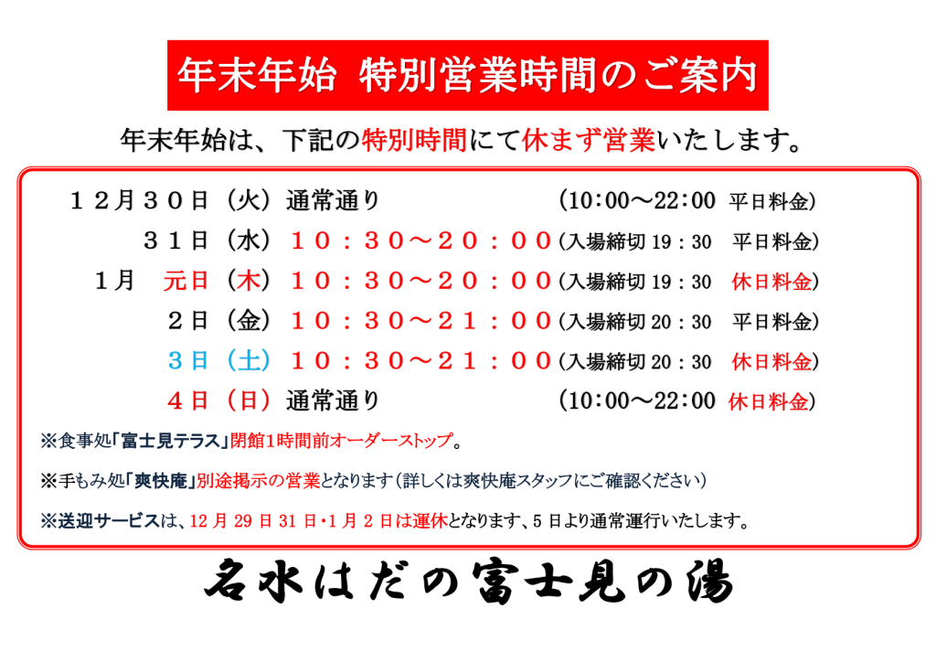 名水はだの富士見の湯をご利用いただき誠にありがとうございます。
